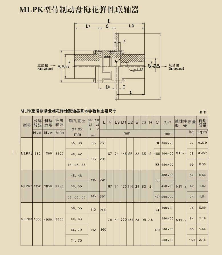 3、MLPK型带制动盘梅花弹性联轴器制动盘组件